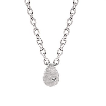 Diva Diamonds® Pear Satin Pendant In Sterling Silver With .01 Ct. Diamond With 18" Rolo Chain