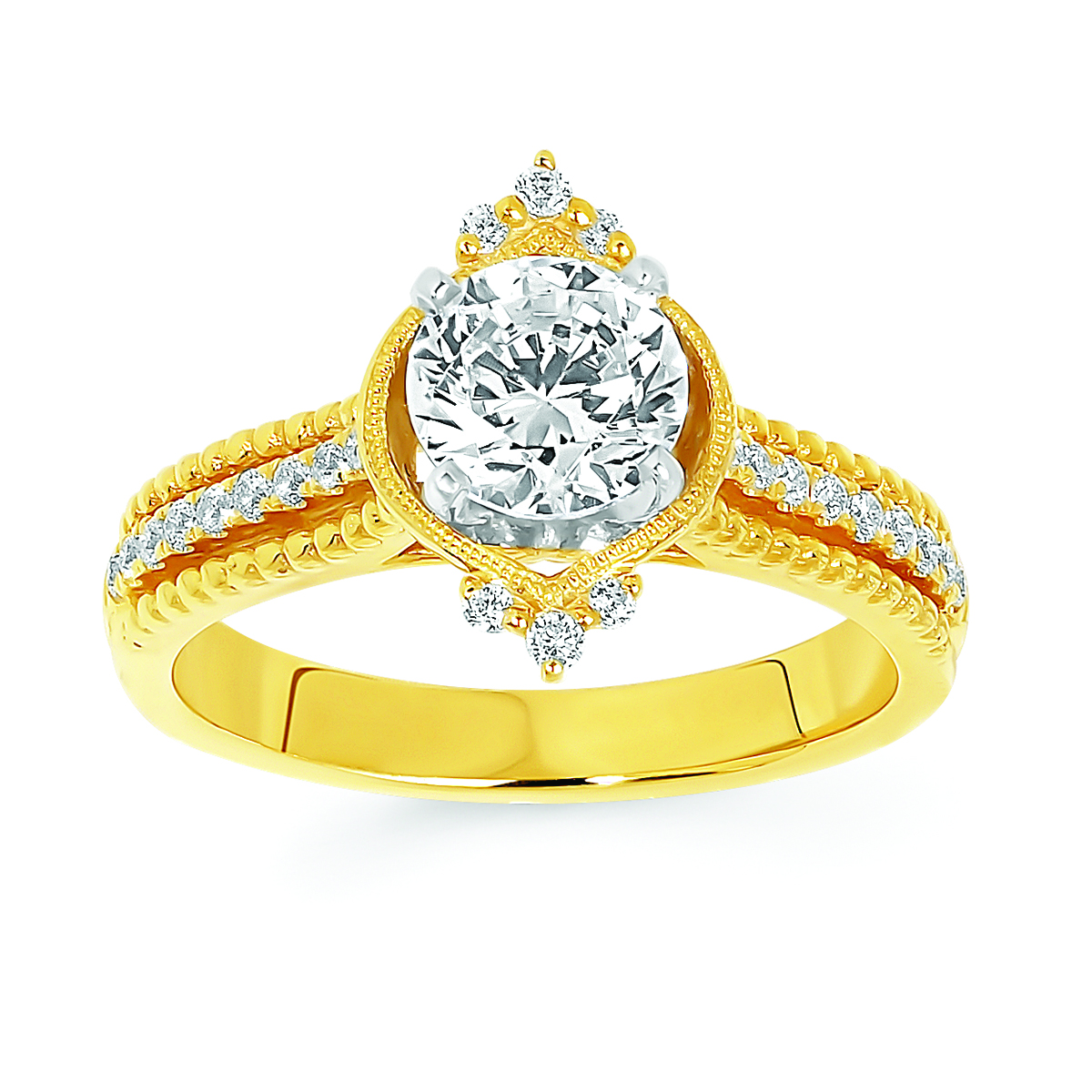 Engagement Ring Forever ElegantĀ® 1/6 Ctw. Diamond Semi Mount shown with 1 Ct. Round Center Diamond in 14K Gold